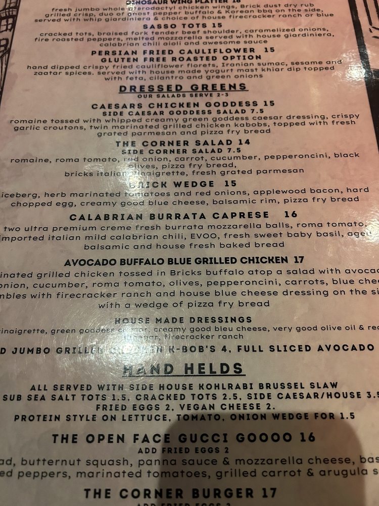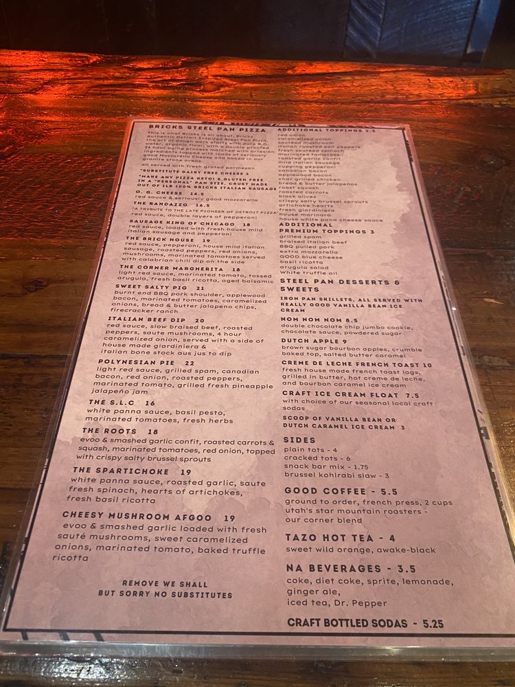 Bricks Corner is a hip, trendy bar in Salt Lake City that offers a variety of delicious pizza and sharable dishes. With options for takeout, reservations, and even catering, Bricks Corner caters to a diverse range of customers. The menu features unique offerings like the Brick Wedge salad and Cracked Tots, along with classic favorites like Garlic Cheese Bread. The atmosphere is casual and welcoming, making it a great spot for groups, families, or a night out with friends. Don't miss out on the full bar, outdoor seating, and gender-neutral restrooms that add to the inclusive and fun vibe of Bricks Corner. As a food reviewer, I highly recommend trying the Buffalo Avocado Chicken Salad and Burrata Caprese for a memorable dining experience.